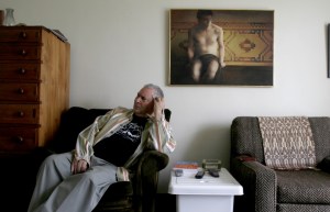Hennie aucamp in his home in Tamboerskloof, Cape Town. On the wall behind him is a highly valuable painting by the famous, deceased South African artist, Adriaan van Zyl. Adriaan’s sister, Dr. Louis Viljoen, lectures in the Department of Afrikaans-Dutch at Stellenbosch University.