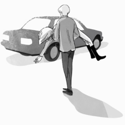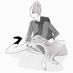Isn’t it a bit odd to pick up a teenager in a weird outfit sleeping by the side of the road? Oh well, otherwise he might have died. – Illustration in black and white by Ollie Brock for The Return of the Young Prince.The dog that almost died – Illustration in black and white by Ollie Brock for The Return of the Young Prince.The bit of grass that taught him everything – Illustration in black and white by Ollie Brock for The Return of the Young Prince.