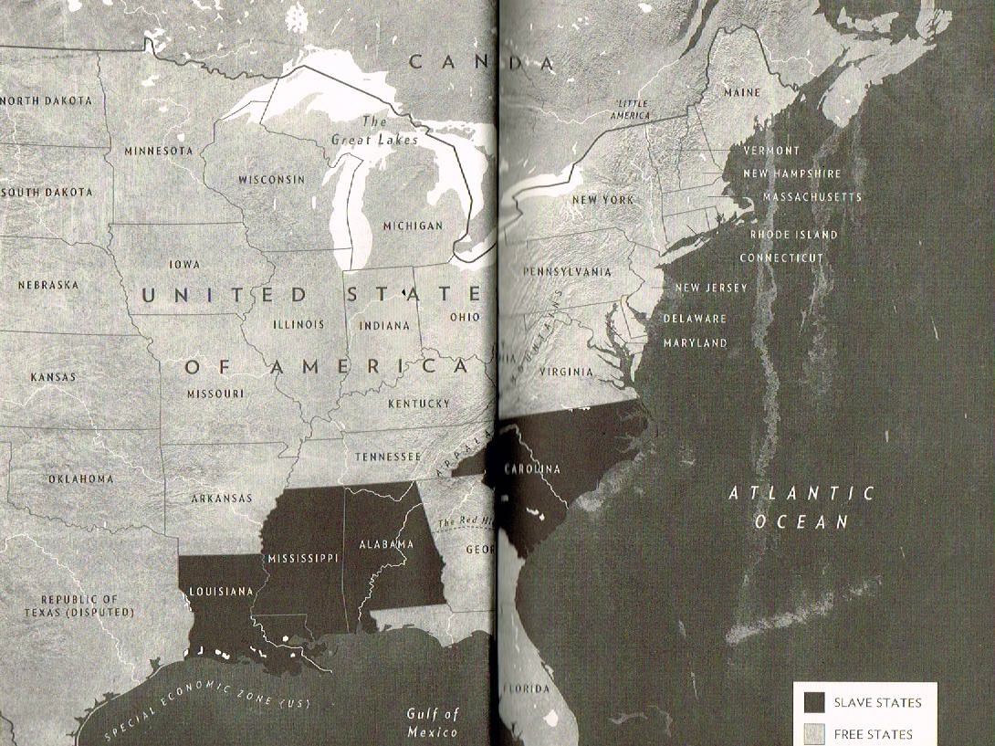 Map of the imaginary “Hard Four” slavery states, from the novel.