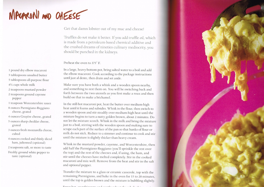 The eye-candy imagery in the book is sometimes not what you’d expect, for instance, drippy cheesy macaroni cheese, rather than prettily presented on a plate. (p.129)