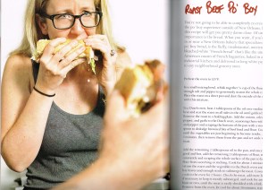 Co-author Laurie Woolever features in the book as well as chef Eric Ripert. Here she is tucking into a dripping “roast beef po’ boy” (p.80).