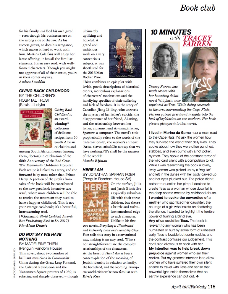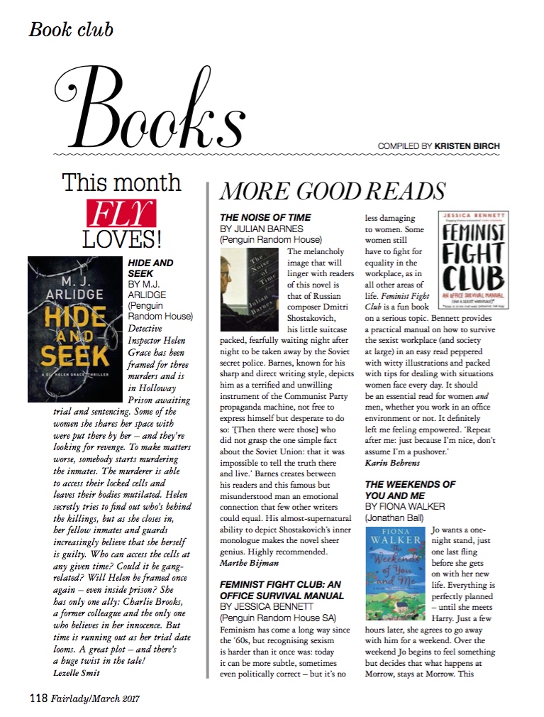 A few months ago I announced that my reviews will be published in the South African women’s magazine, FairLady. The relationship did not last as long as the previous four-year stint. After having had three reviews published, I was informed that as of May 2017, the “Books” section of the magazine will be used for publicity for a local bookseller, The Book Lounge. The Books section of the April issue of FairLady was the last featuring write-ups by individual reviewers, whose opinions were published with their bylines. So, it’s ¡Adiós, FairLady, from me. Why? Let me explain. The argument is long but the story is bigger than me and my obsession with reviewing books.