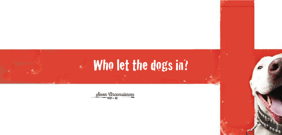 The pitbulls that sound like they are saying “Fuckoff!” when they bark are an important element, and the different parts of the story are introduced by increasingly desperate and incoherent plays on the question: “Who let the dogs in? Who? Who?” (perhaps an intentional reference to Who let the dogs out? (who, who, who) by the Baha Men, 2000?)