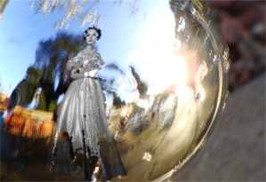 Illustrations of “Heathcliff” and “Kathy”, from stills of the 1939 black and white film version of the book, superimposed on photos of the Grove Hotel, Watford, Hertfordshire, UK. (Images by M. Bijman, from “Feels Like Wuthering Heights”, Blurb Inc., 2011.)
