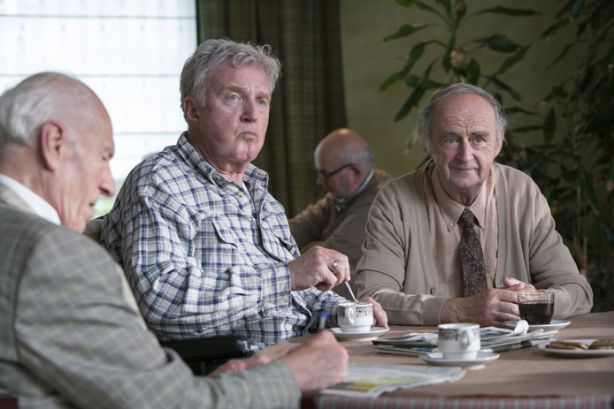 Image from the TV series of the first diary of Hendrik Groen. Ironically, in an echo of what happens in the second diary, the producers of the second series have to find a new location to shoot, since the old age home where they shot the first series is being sold. Talk about art imitating nature. (Centre, “Evert”, played by André van Duin; right, “Hendrik” a.k.a “Henkie”, played by Peter de Smet.)