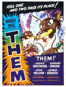 “Them!”, 1954. The earliest atomic tests in New Mexico cause common ants to mutate into giant man-eating monsters that threaten civilization, leading to a horrible finale in the desert.