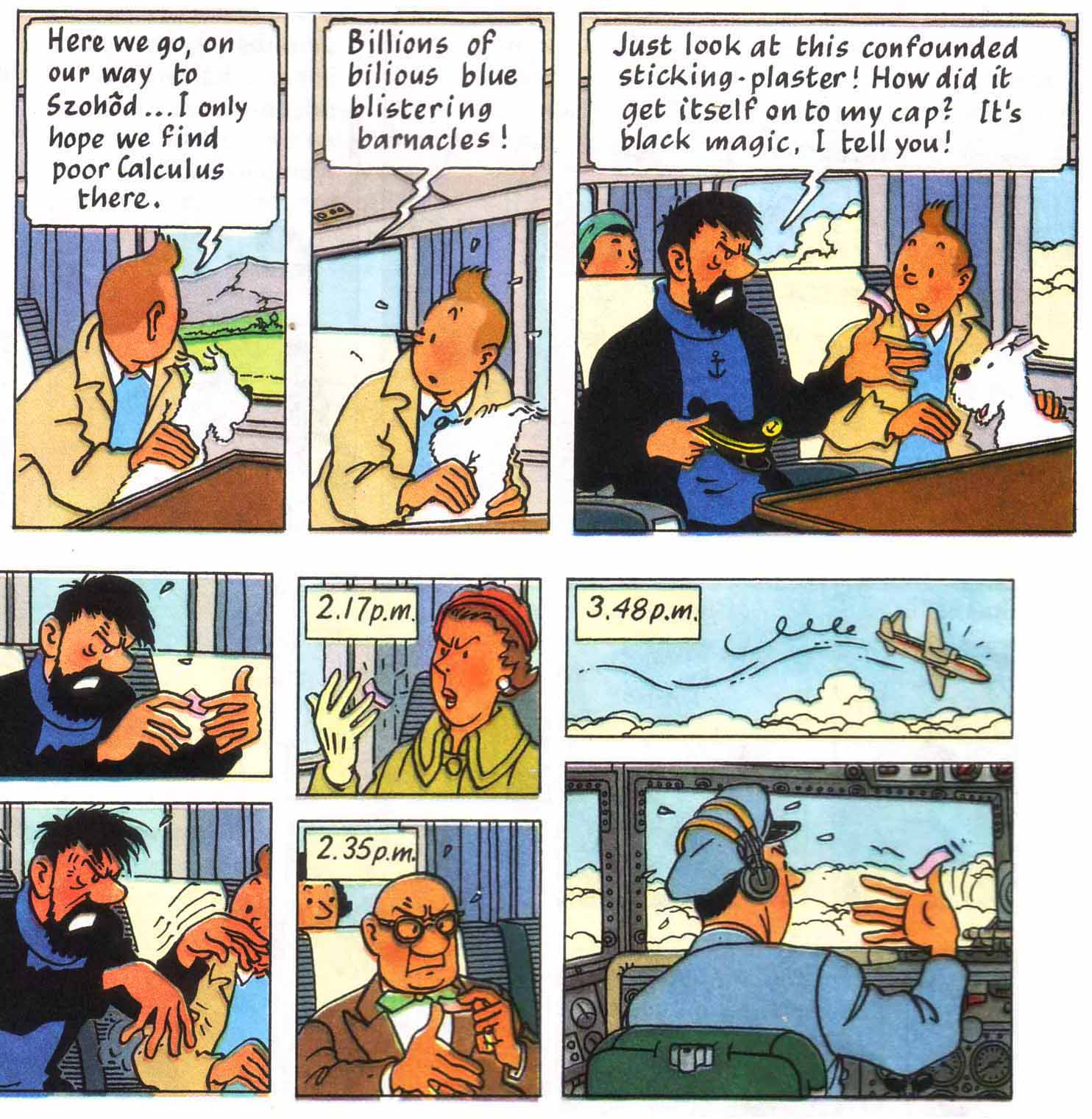 “Captain Haddock” and “Tintin” and the piece of sticky plaster in “The Calculus Affair”, by Hergé. “Szplug!”