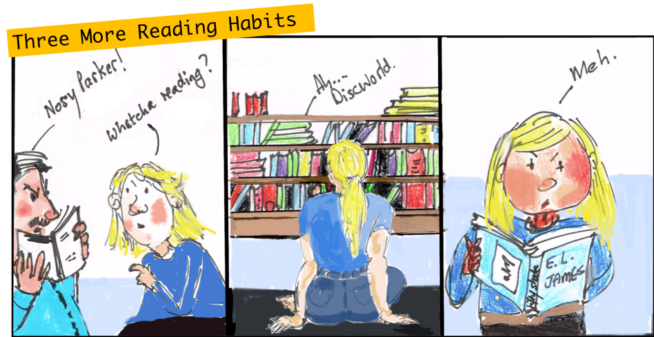 The point is that reading – books or otherwise – is a type of habit. Habits are forms of behaviour that are made and entrenched over years, sometimes lifetimes. Some habits are “keystone habits” and those are the ones that are near impossible to break and replace. These can be good or bad for you – smoking would be a keystone habit that’s bad for you. I suspect in the case of people like the ones in these cartoons, reading is a keystone habit.