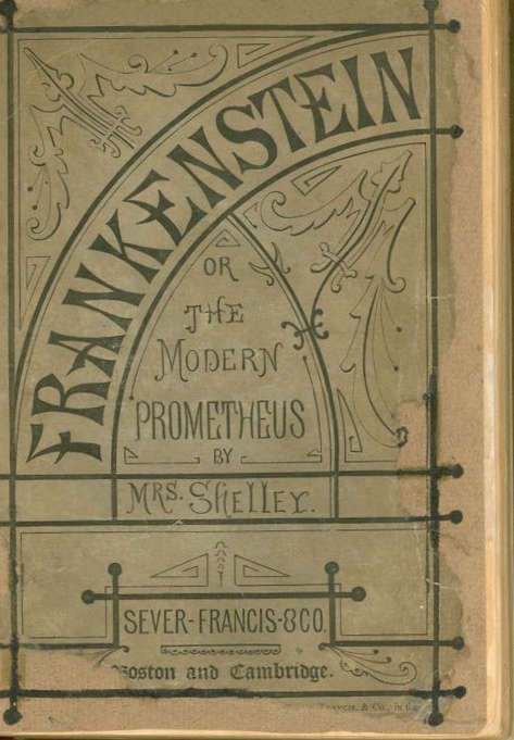 A post-1831 edition of Mary Shelley’s novel Frankenstein, where she is identified as “Mrs. Shelley” and the subtitle of the book is “Or the Modern Prometheus”. In Greek Mythology, Prometheus is said to have created humanity from clay.