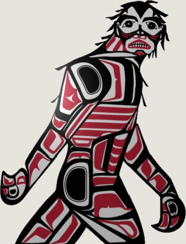 The icon of the Sts’ailes (or Chehalis) First Nation, a Sasquatch. The operator of the ski resort up the mountain from their lands renamed the Hemlock Ski Resort “Sasquatch Mountain Resort” to tie into their local partner, the Sts’ailes. The name recognizes the significance of the Sasquatch in Sts’ailes culture, as well as the business-to-business agreement between the two parties. The word “Sasquatch” is an anglicized pronunciation of “sasq’ets,” a Sts’ailes word that tells a story of how Sasquatch is a primary caretaker of the land.