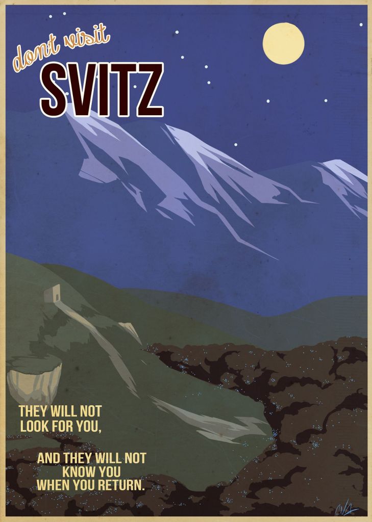 Like the unspecified location of her family home, the authors also mention one of the oddities in the Night Vale world, like the mid-European country called “Svitz”. There is no such place, but to “schvitz” in Yiddish means to sweat, and that is indeed what people do during the murder, battles and mind-games that take place in Svitz and its main city “Luftnarp”, home of “King Torrid IV”. But they also set the action in actual places like Hamburg, Paris, Morocco, Dubrovnik, and the Pale of Settlement in Russia.