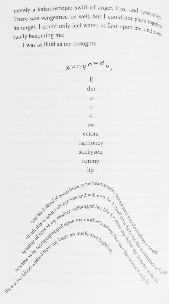 “Here is what the sea smells like. It is more texture than scent. [The sea smells like old wood and wet leaves. Like cold mud and warm stone. Like every creature that has ever lived in it, a churning graveyard and nursery.” (p.29)