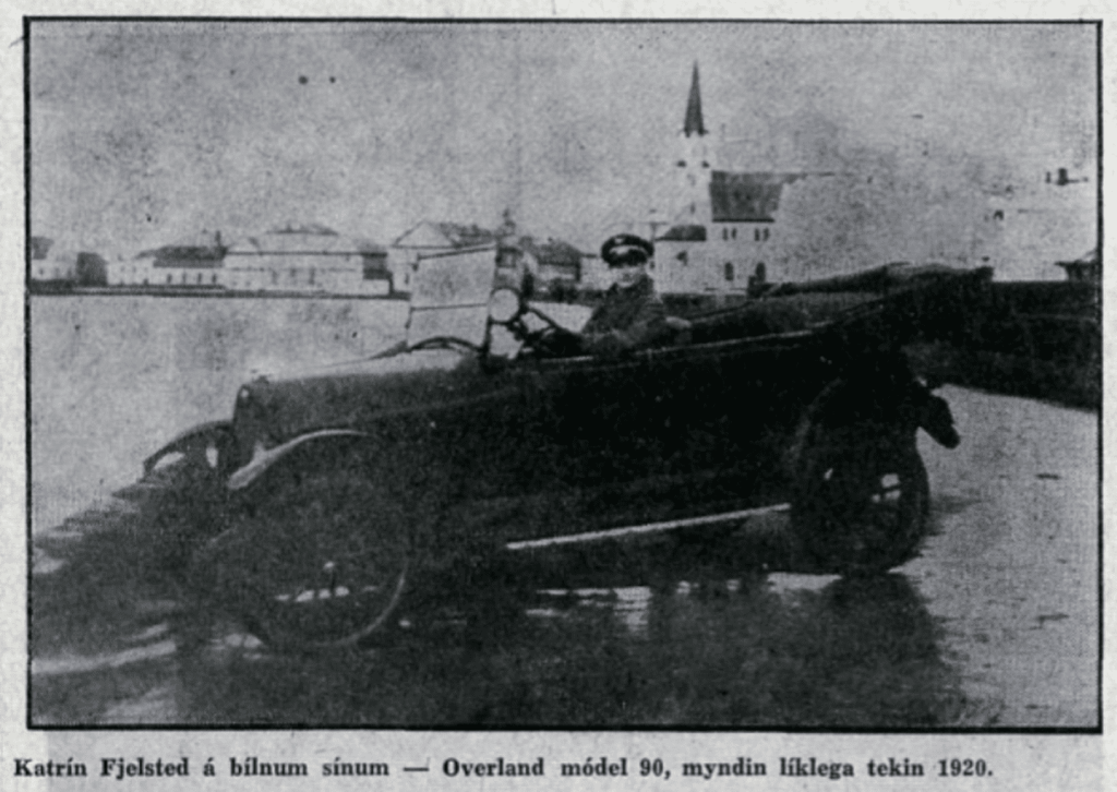 We talked quite a lot about “Sóla” – she was triggered by a photograph I found of a woman who was sitting at the wheel of an Overland convertible at one end of the lake in Reykjavik. She was shown dressed up in a big leather overcoat like drivers had, looking like million dollars. Under the picture it said that this was the second woman in Iceland who got a provisional driver’s licence, that she had also been the second woman in Iceland to work as a professional house painter, and that she had actually been a driver for doctors in the Spanish influenza.