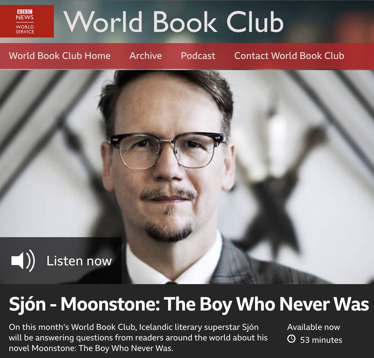 Interview with Sjón about his novel “Moonstone”, on BBC World Service – World Book Club, released Jan. 3, 2021 Length: 49:10