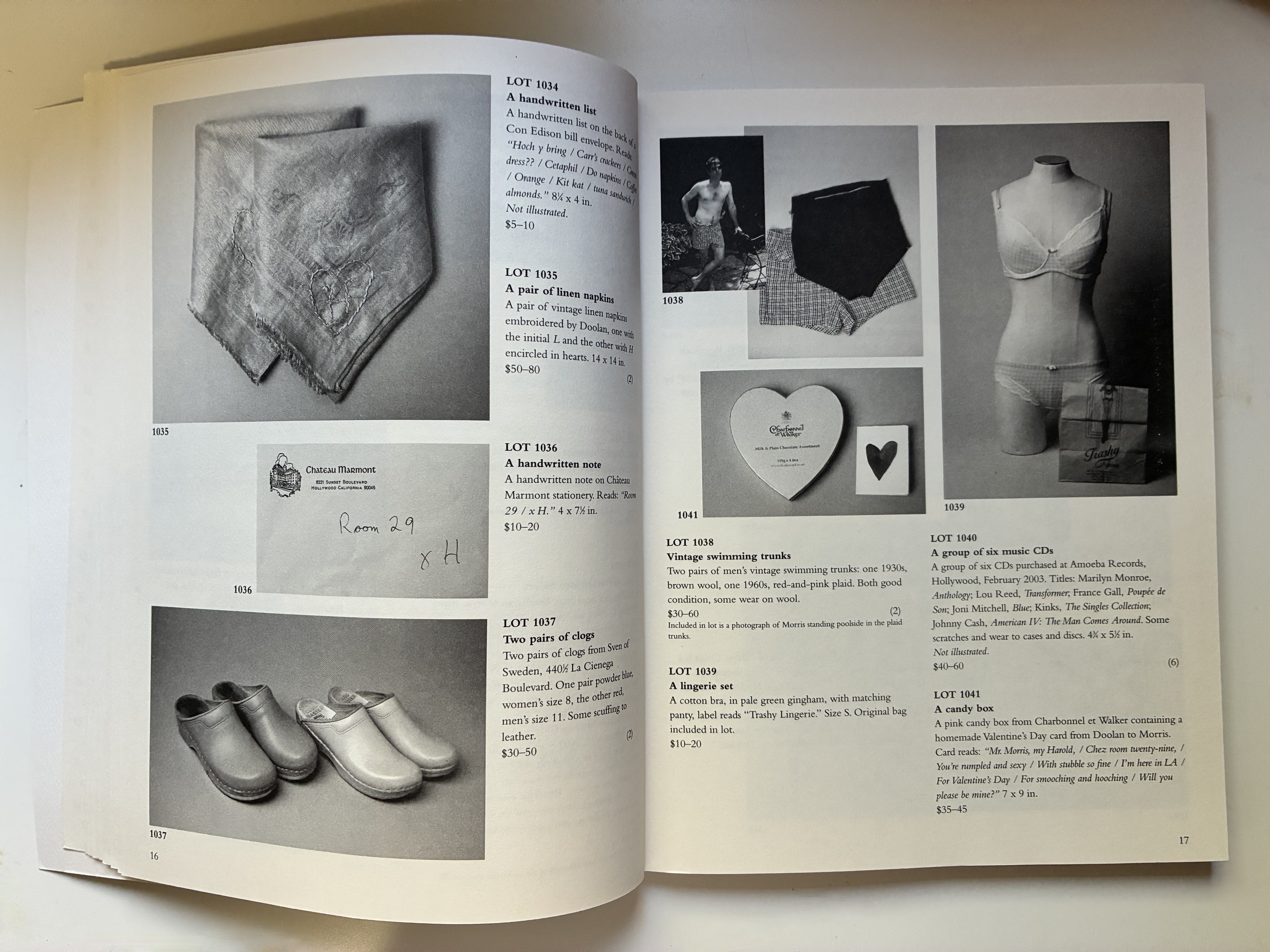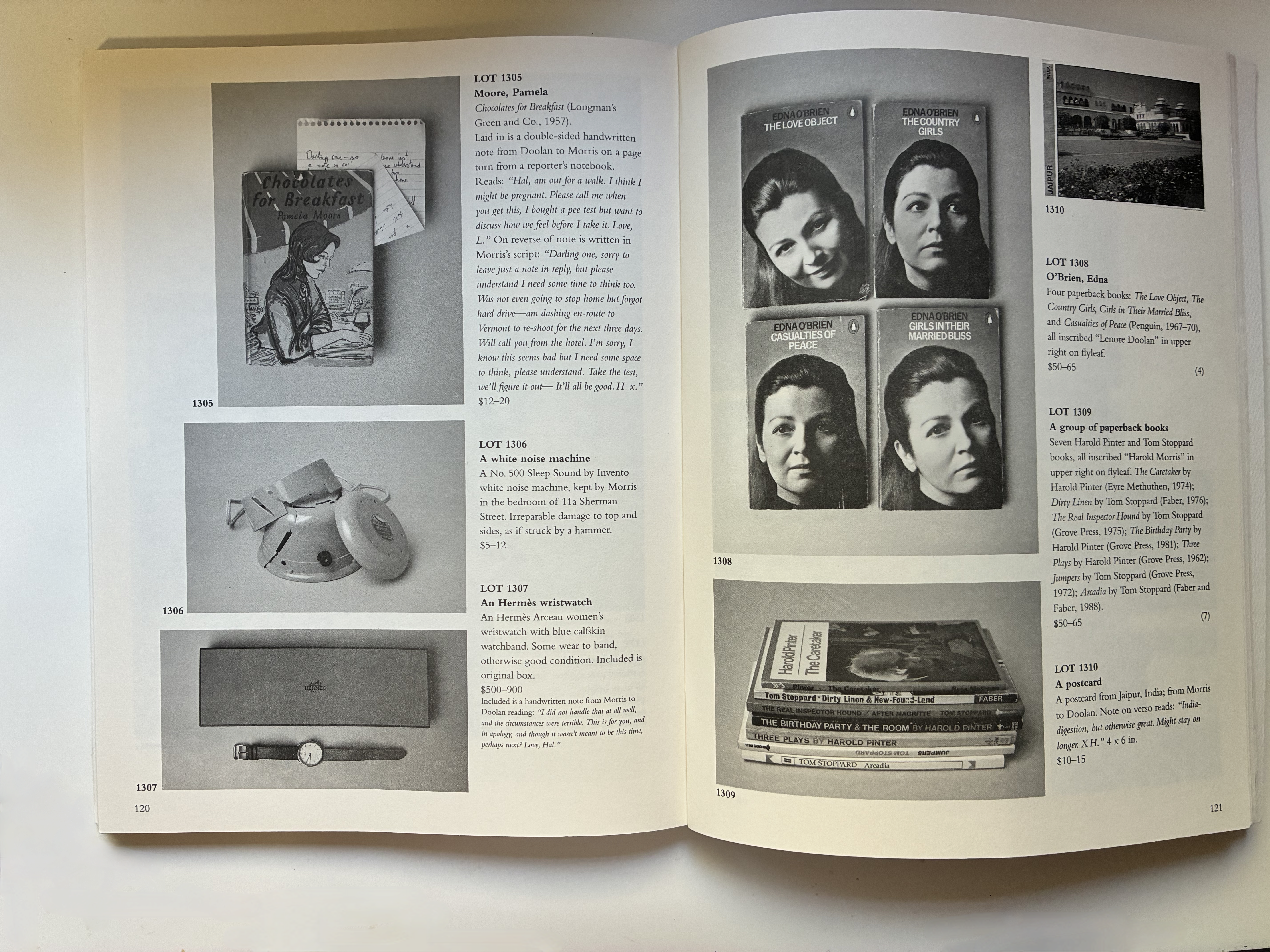 That’s what makes this unusual book so touching. Each of these 1332 “lots” in the catalogue has an auction estimate. The things might be proof of life-changing events, but like many things that we inherit, and value, they are worth next to nothing. For instance, “Lot 1110” (the quote, above), has an “auction estimate” of “$5 to $10” – presumably for the value of the used novel in which Doolan had put a handwritten note with those words.