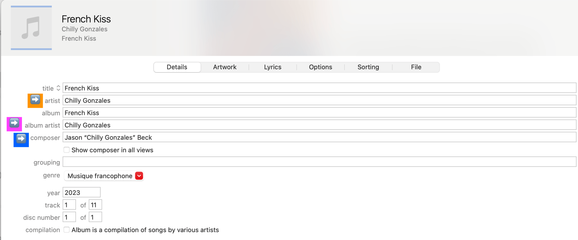 Next time you download or stream a song, right-click and get the Info about it or to view the credits, and check who’s the performing artist, the album artist/writer, and the composer. You’ll be surprised who gets credited for what. It might be all the same person, like in the example below, or the artist by their real name, or different people altogether.