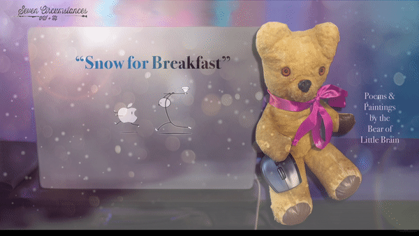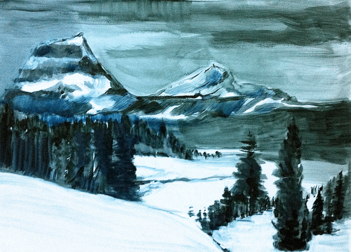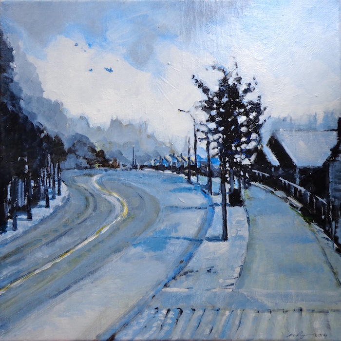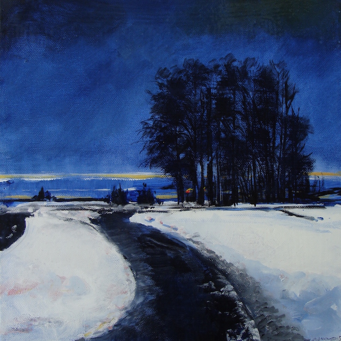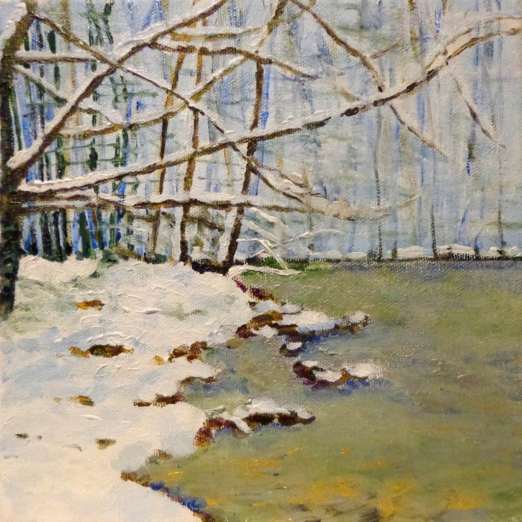 Paintings If I painted in gold and green a restful little river scene, and posed the laden shrubs just so under the weight of fallen snow, would you see it and remember the road trip we made one December? I paint not just for me, you know: The highways pass, the vistas go; a cherished moment can seem then as fleeting as a mise-en-scène. But in paintings they can last– mementoes of a happy past.