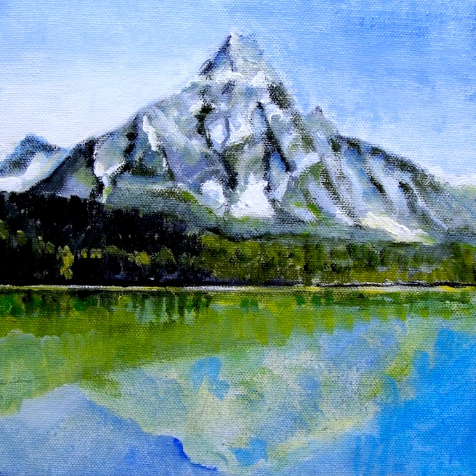The Guardian of the Lake (sonnet) There lies the little isthmus sticking out of Island Lake, so perfect it looks posed, man-made, perhaps a fake. The trees, tidy bits of Lego, are arranged to just give height enough to draw the eager eye to a higher line of sight, to where the mountains glower, their crags streaked with glaciers, whispering on the icy wind to this sunny patch of pond and firs: The toy lake charms in apple green Under the sentinel peaks of aquamarine.