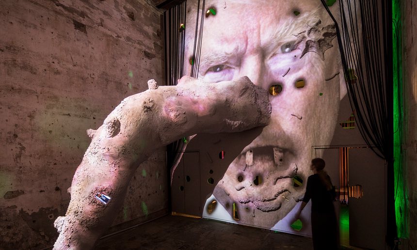 Conceptual artist Egill Sæbjörnsson, who was chosen to represent Iceland at the 2017 Venice Biennale art exhibition, has made two three-storey-high heads of bad-tempered, ugly, coffee-loving, farting trolls – rather than elves. The heads have noses sticking out into the central exhibition space so that people can walk around them. The trolls, called “Ūgh” and “Bõögâr”, seem to come alive when video installations are projected onto each structure, so that it looks as if they move, snarl, breathe and talk to each other about which Venice tourists look the most delicious to devour. (Continue reading…)